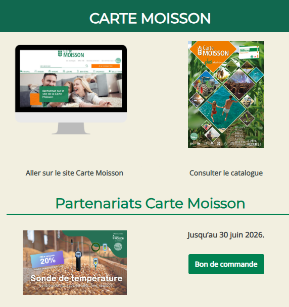 Découvrez les offres du moments ainsi que tous les partenariats en cours et avantages réservés aux adhérents grâce à la Carte Moisson.